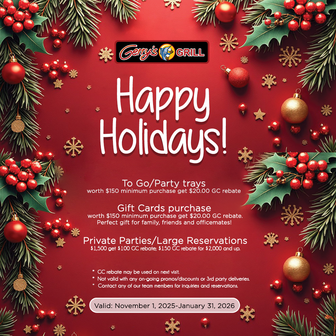 These are the reasons why Gerry's remains to be the favorite among Filipinos. For as long as we can, we guarantee nothing but great food and loads of fun.